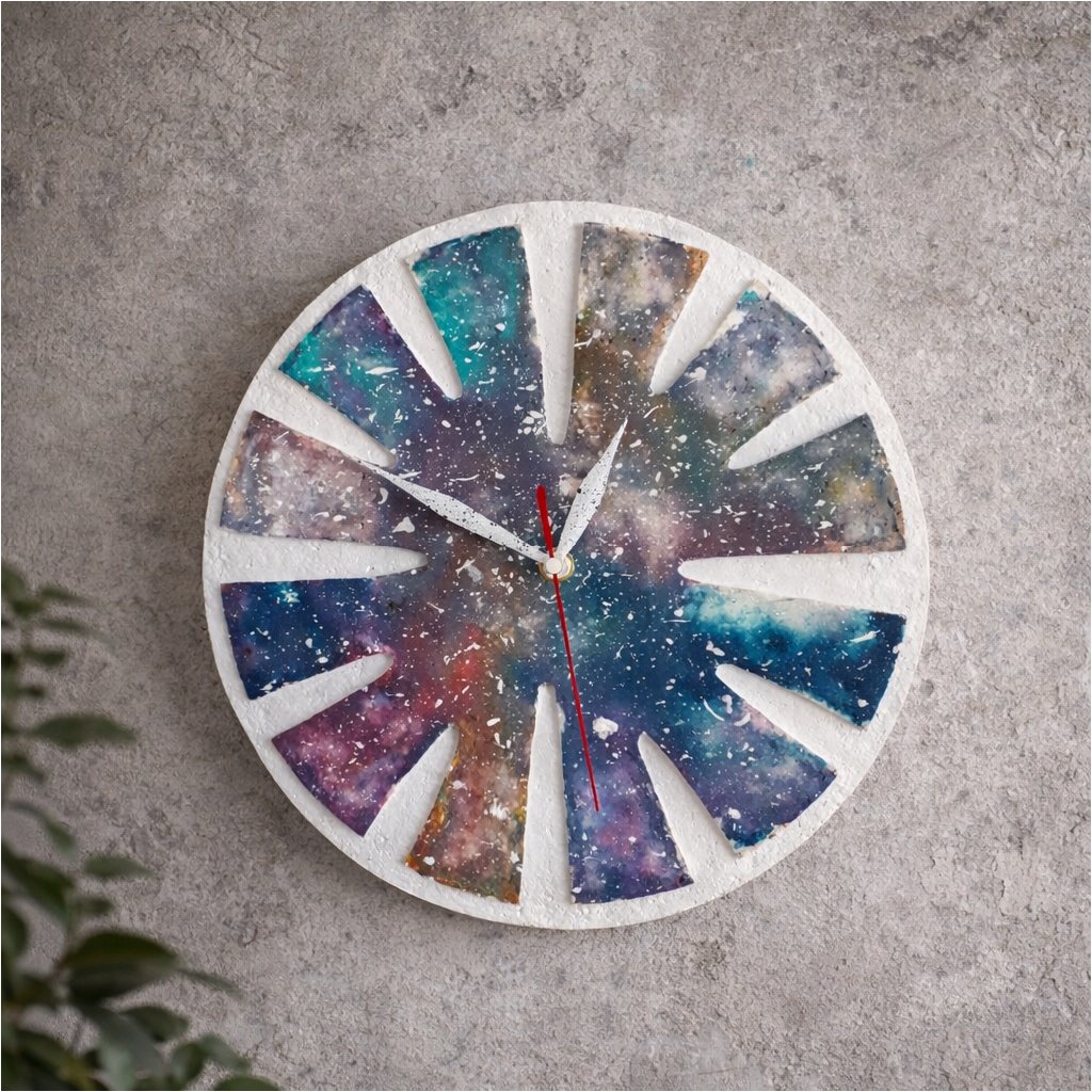 Dopřejte si krásné hodiny z recyklovaného papíru které jsou díky ručnímu zpracování papíru a malbě unikátním kouskem umění a zároveň funkčním doplňkem domácnosti.