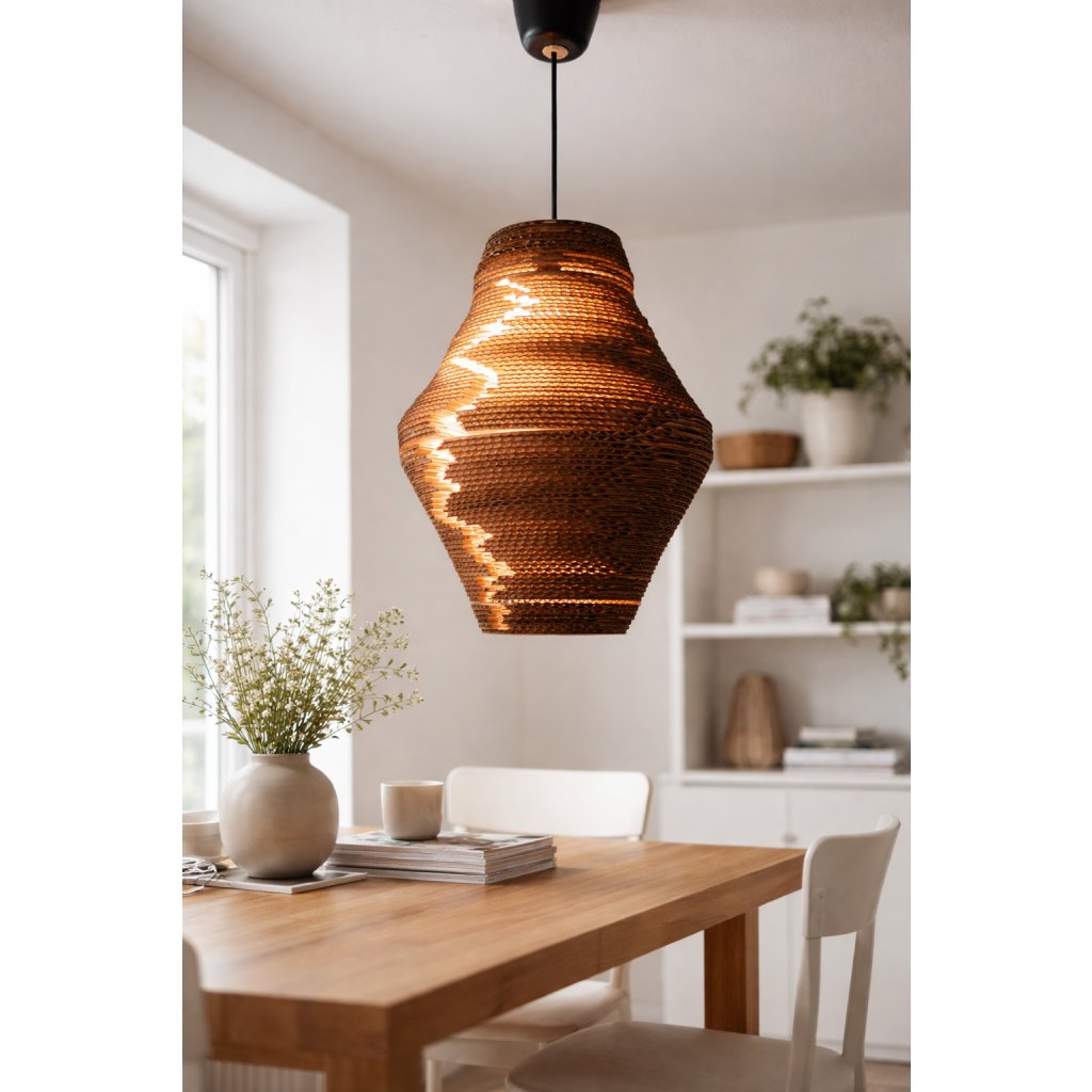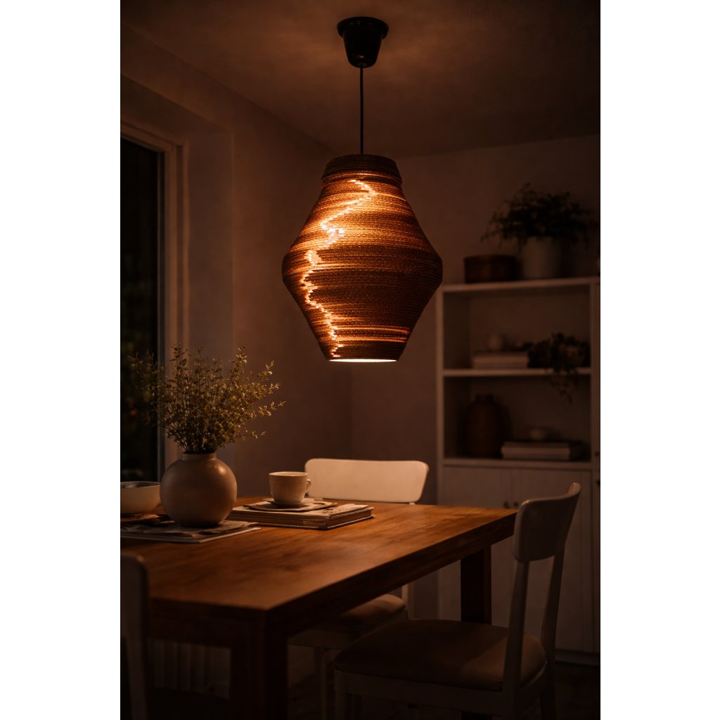 Intimní závěsné světlo, které vytváří klidnou světelnou zónu.