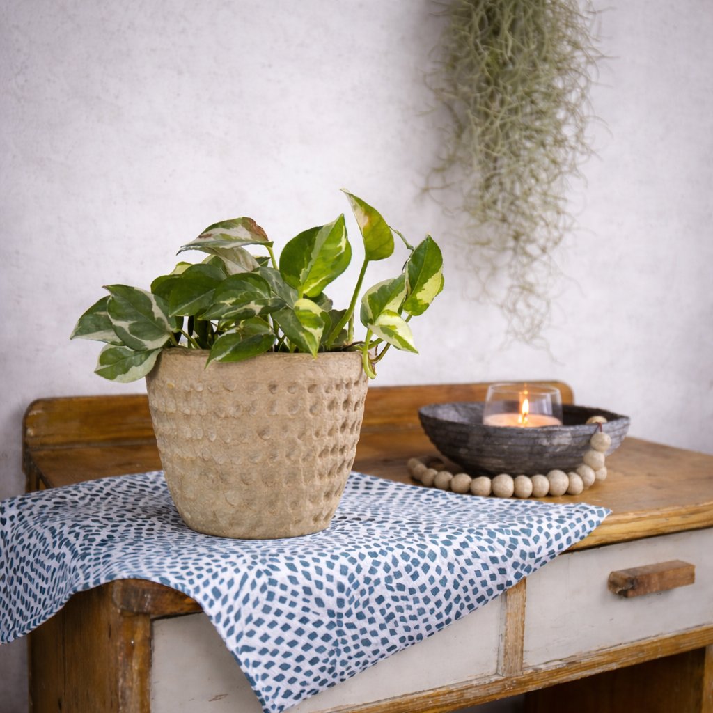 Přírodní obal na květináč z papíru s releéfem.