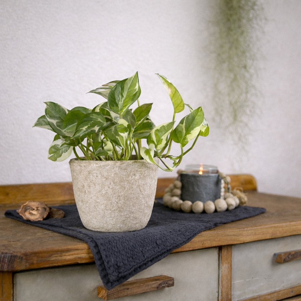 Tvar obalu je jednoduchý a vyvážený. Díky tomu nechává vyniknout samotnou rostlinu a snadno zapadne do klidně laděných interiérů. Funguje jako nenápadný solitér na parapetu, polici i pracovním stole.