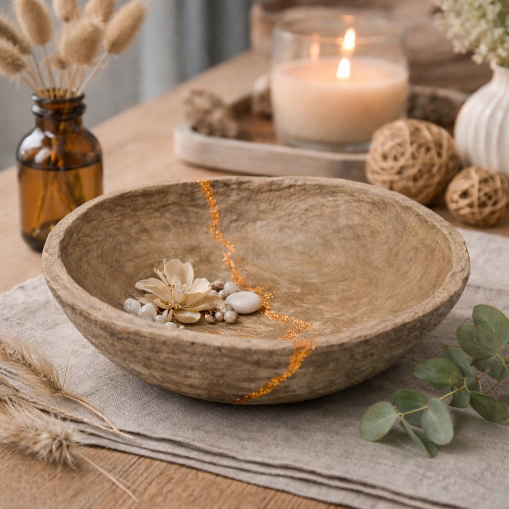 Papírová část je chráněná latexem proti vlhkosti, dřevo je ošetřené směsí lněného oleje a včelího vosku. Díky tomu je mísa nejen estetická, ale i odolná a připravená na každodenní provoz.